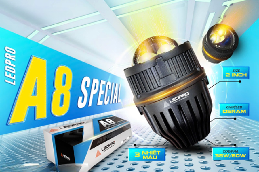 Chào mừng bạn đến với trải nghiệm ánh sáng hoàn toàn mới từ LEDPRO A8 SPECIAL – siêu phẩm đèn tăng sáng bi gầm 2.0 inch vừa chính thức ra mắt. Với thiết kế tinh xảo và công nghệ hiện đại, LEDPRO A8 SPECIAL không chỉ mang đến ánh sáng mạnh mẽ mà còn tạo ra sự an toàn và khác biệt trên mọi cung đường.