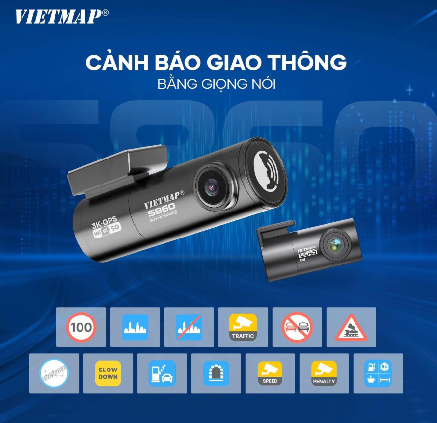 Camera hành trình Vietmap S860 không chỉ ghi hình mà còn hỗ trợ cảnh báo biển báo giao thông bằng giọng nói trên toàn quốc. Hệ thống dữ liệu giao thông luôn được cập nhật thường xuyên, giúp tài xế chủ động hơn khi lái xe.