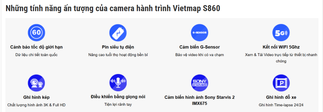 – Bạn đang tìm kiếm một chiếc camera hành trình chất lượng cao với những công nghệ tiên tiến nhất? Vietmap S860 chính là lựa chọn hoàn hảo dành cho bạn! Đây là phiên bản nâng cấp mạnh mẽ thay thế Vietmap KC01, mang đến khả năng ghi hình sắc nét, cảnh báo giao thông thông minh và nhiều tiện ích khác giúp bạn lái xe an toàn hơn.