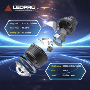 - Chip LED OSRAM cao cấp: 6+1+1 chip LED OSRAM từ Đức cho hiệu suất chiếu sáng đỉnh cao, tuổi thọ lên đến 50.000 giờ.