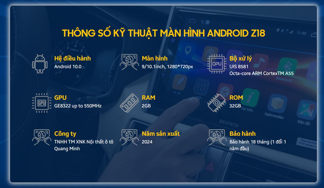 - Màn hình lắp 9/10inch, 1280*720px, IPS Full HD,Cường lực 2.5D