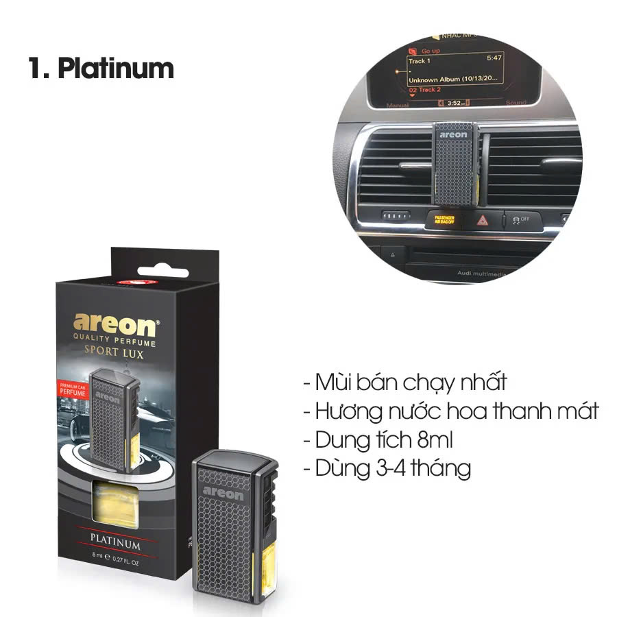 Hương Platinum là sản phẩm bán chạy nhất trong dòng nước hoa ô tô gắn cửa điều hòa của Areon hiện nay.
